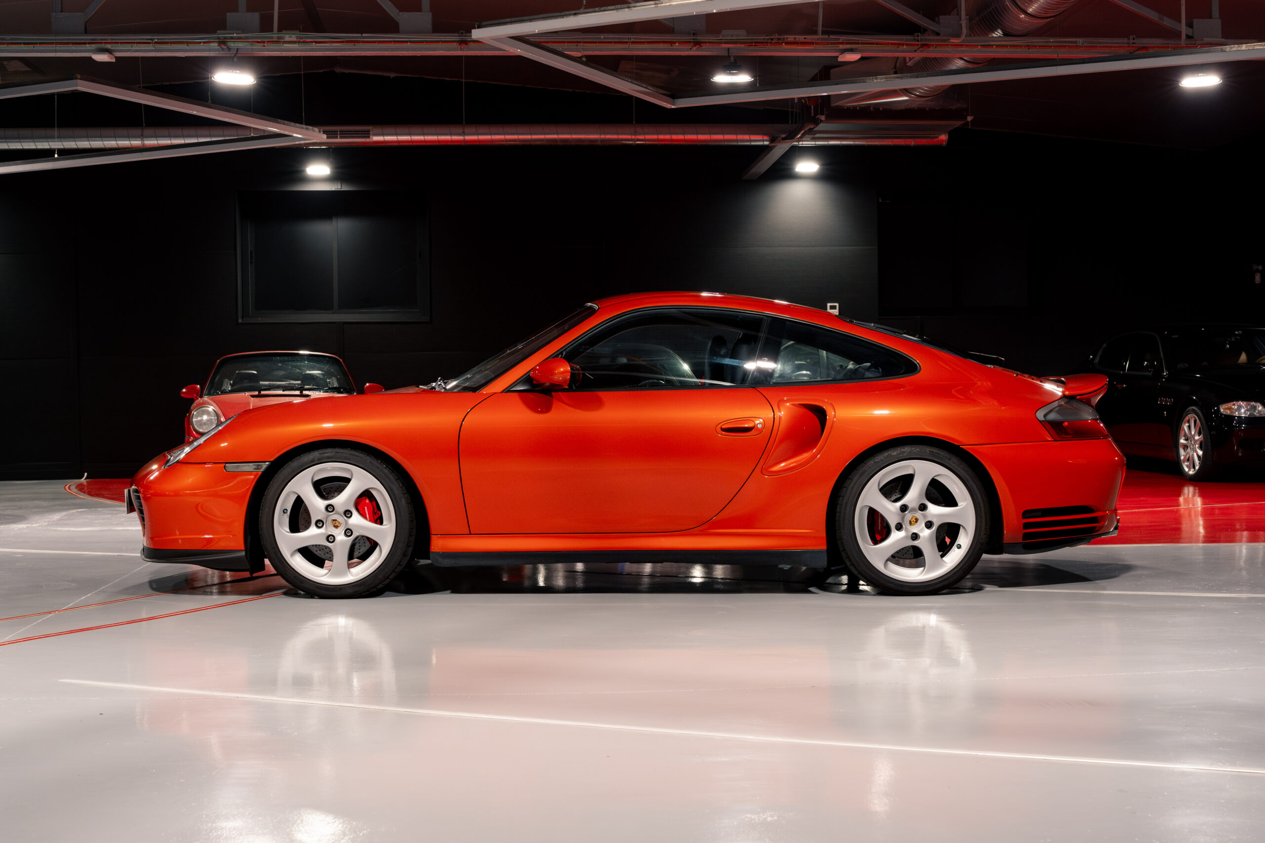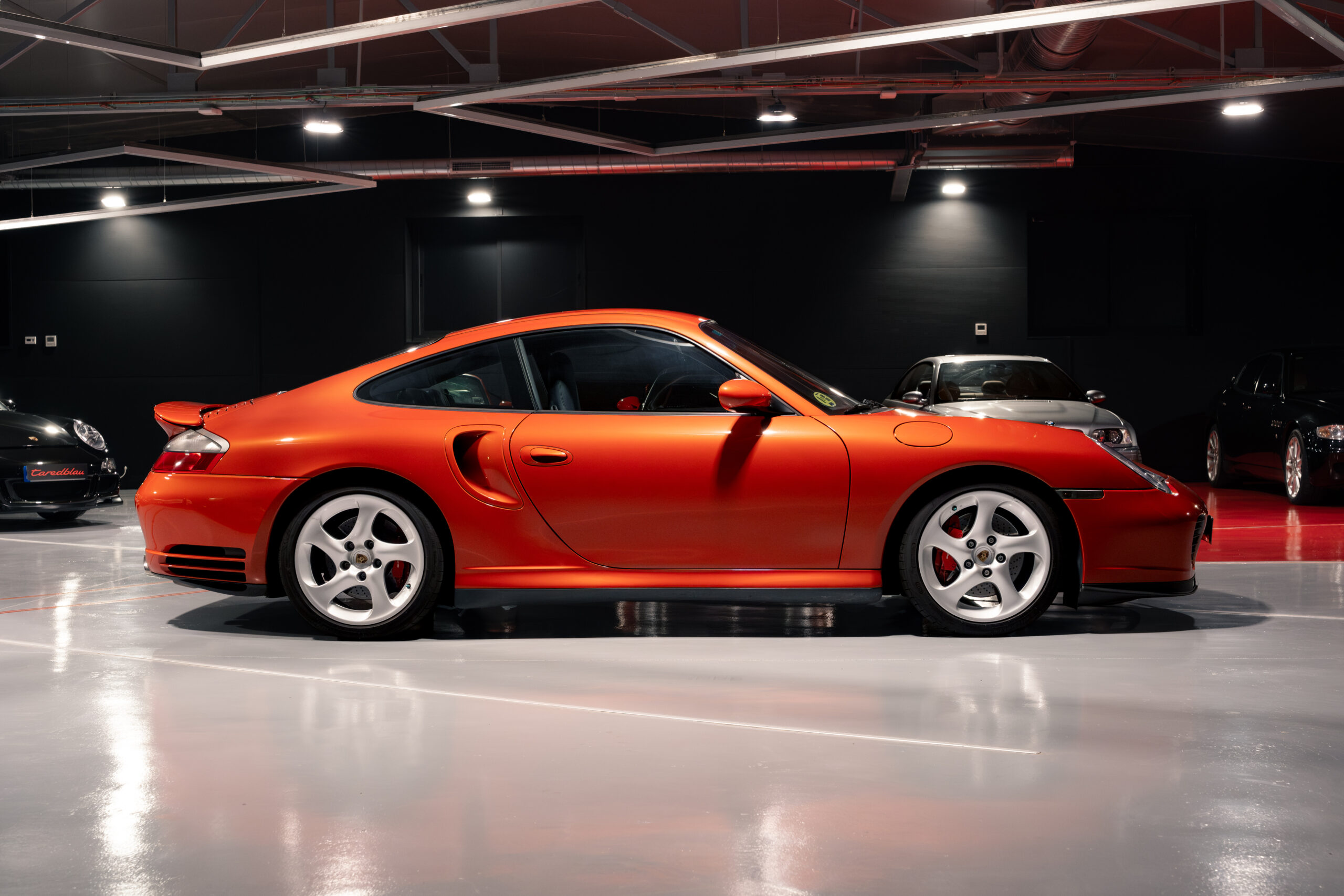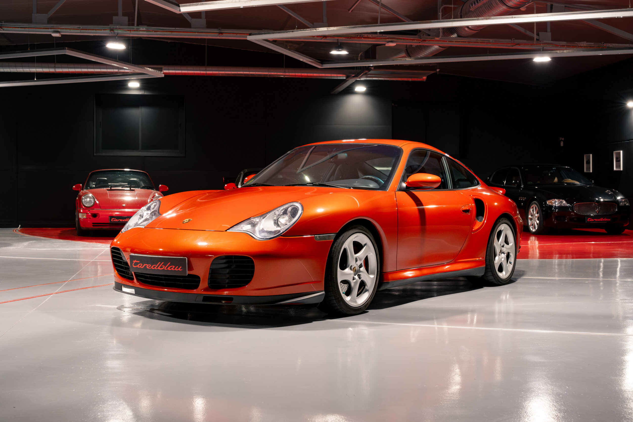 Porsche 911 Turbo 996 producido para el mercado español y matriculado en diciembre del 2001 en España, en una exclusiva combinación de color Zanzibar Red con interior en azul metropol (azul muy oscuro).