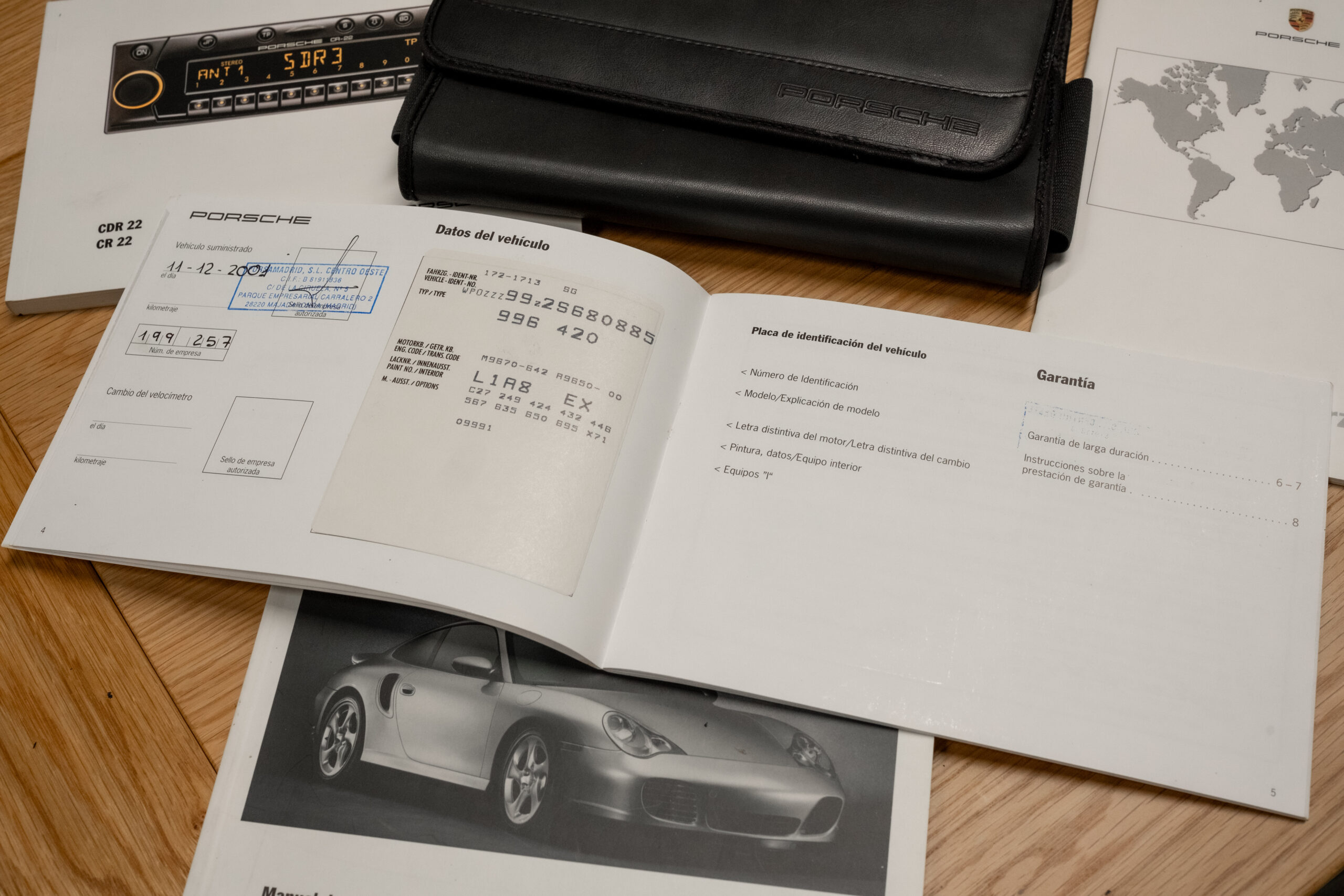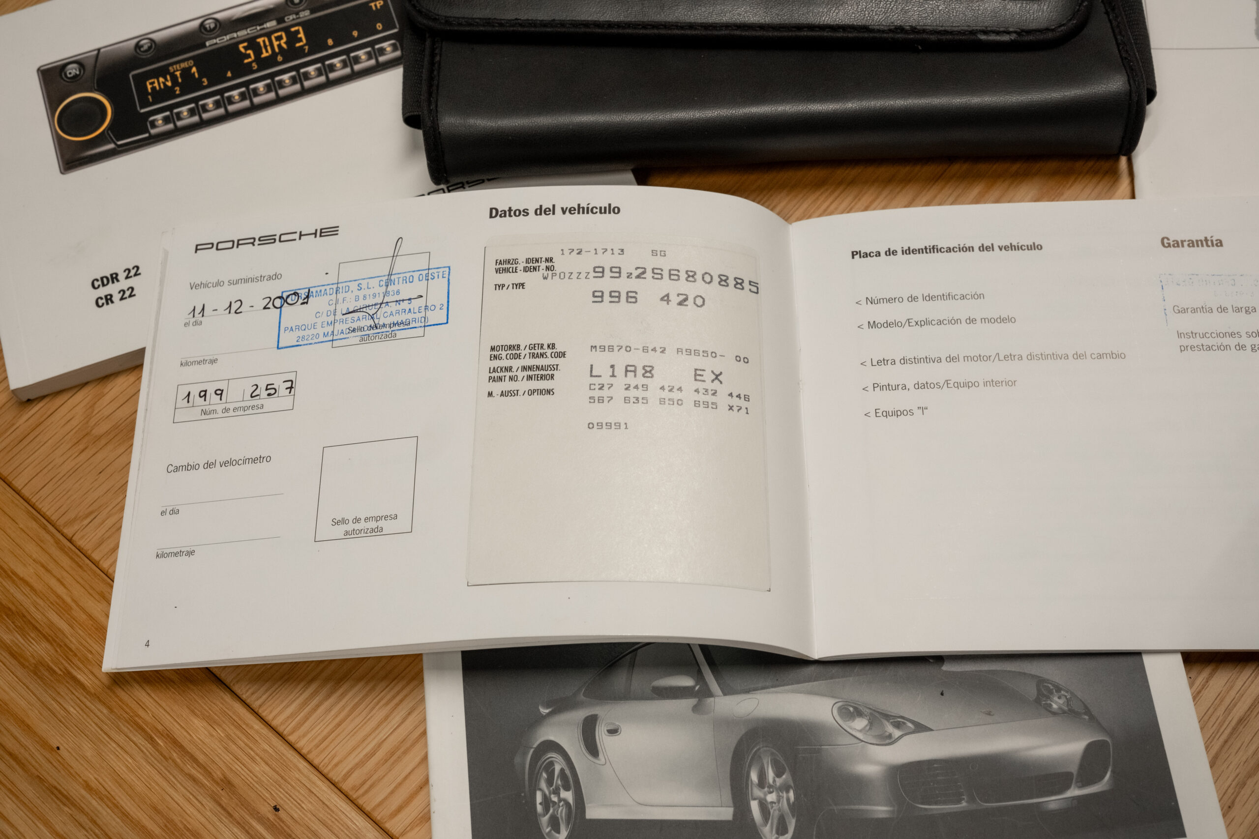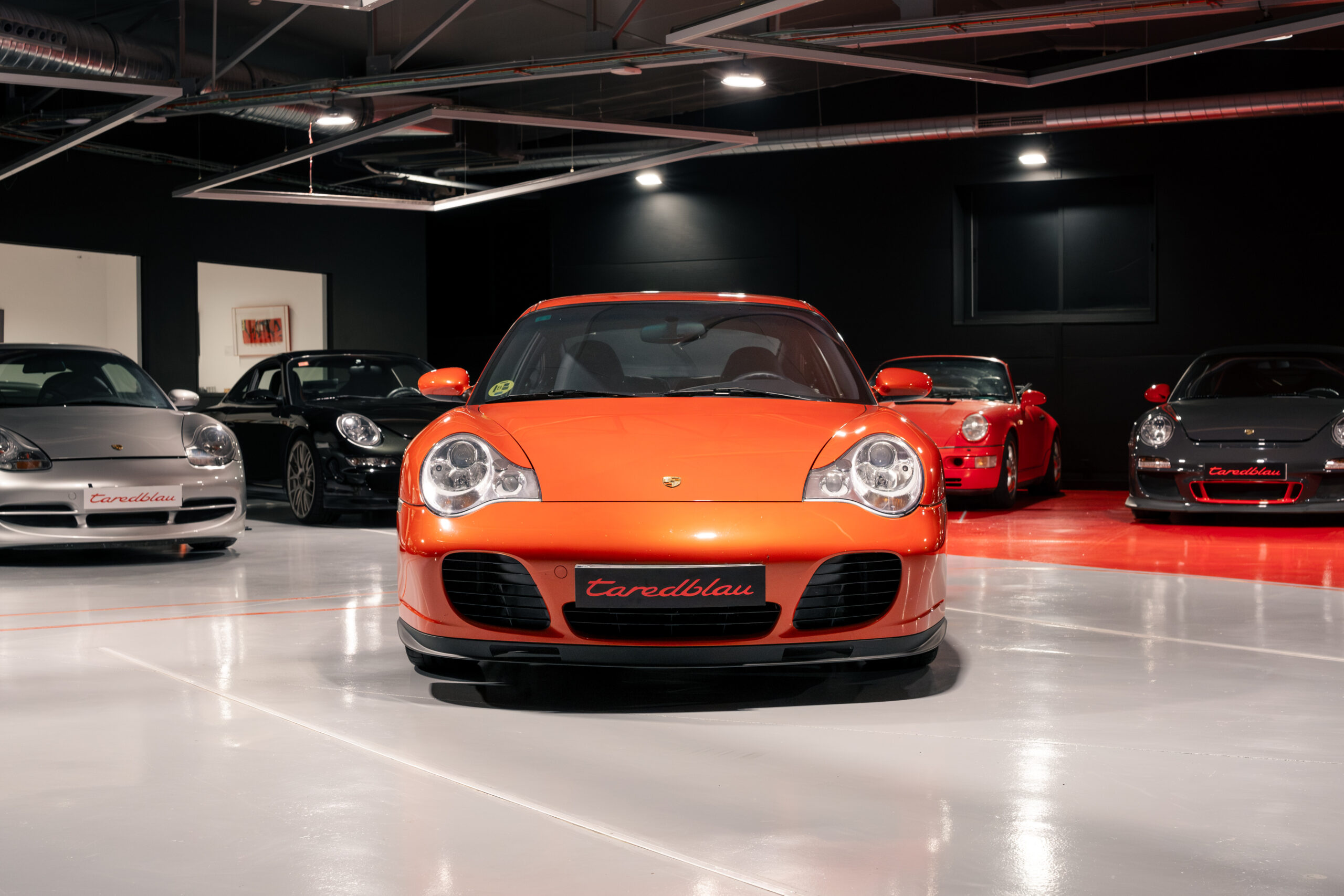 Porsche 911 Turbo 996 producido para el mercado español y matriculado en diciembre del 2001 en España, en una exclusiva combinación de color Zanzibar Red con interior en azul metropol (azul muy oscuro).