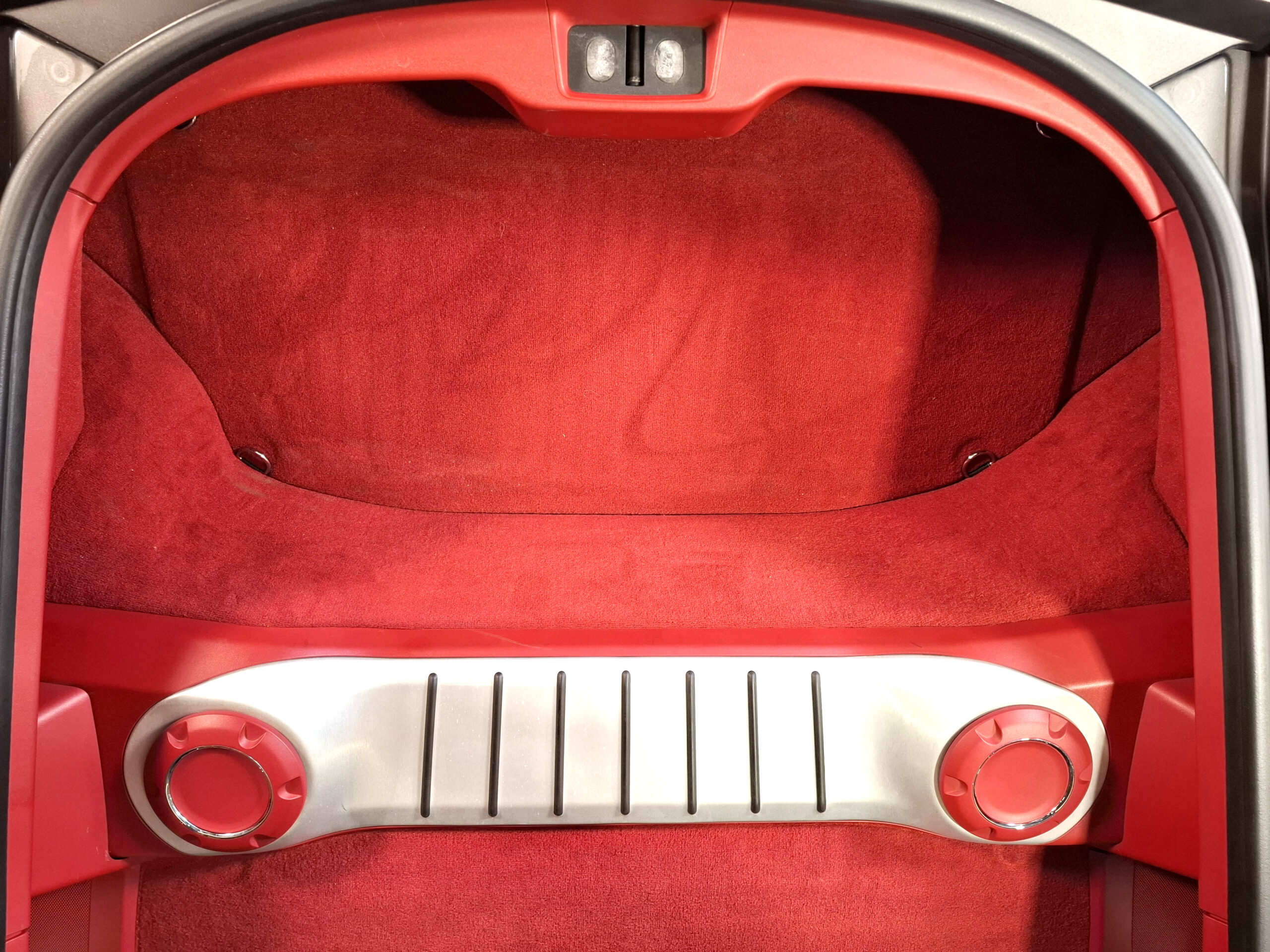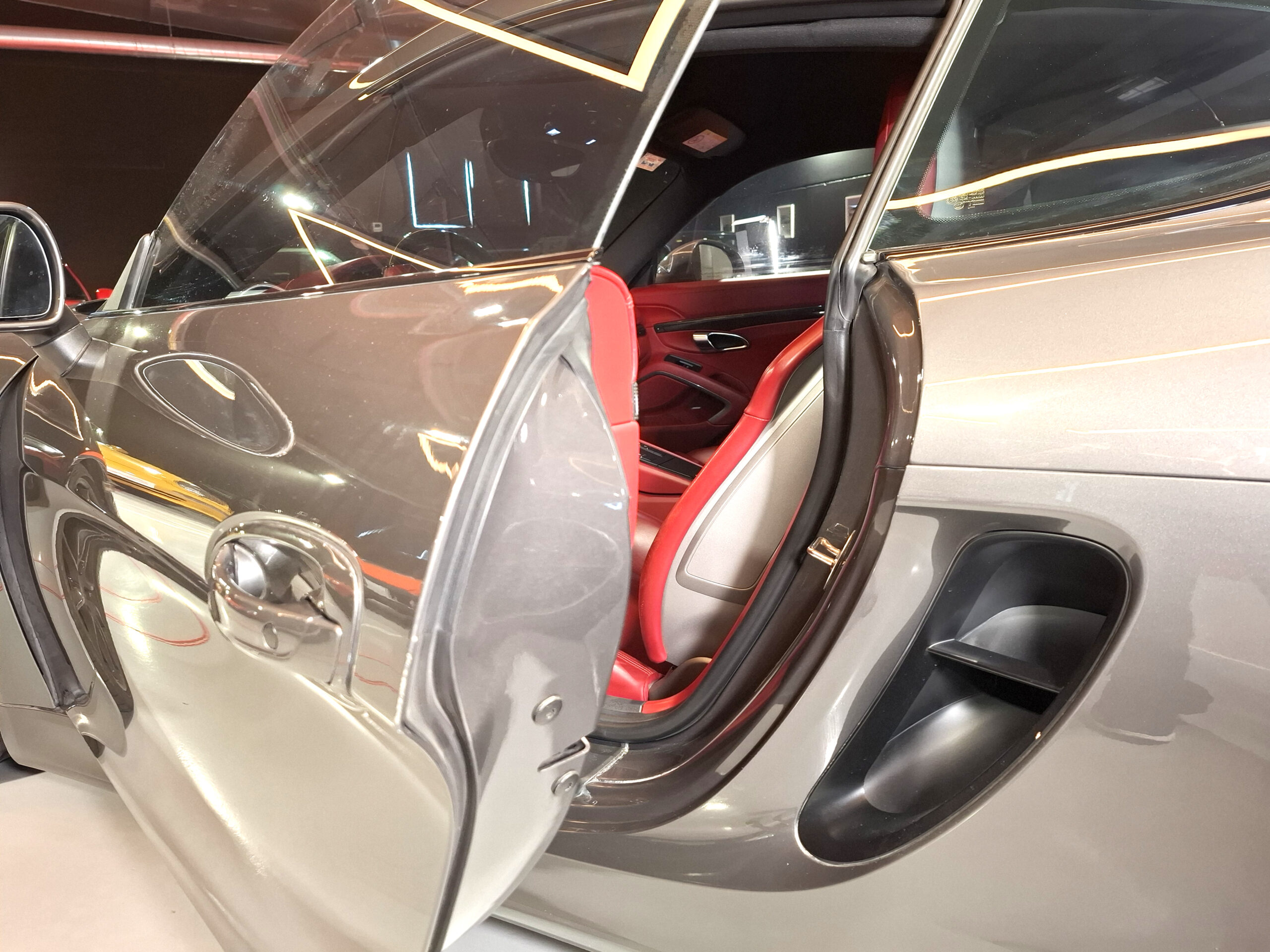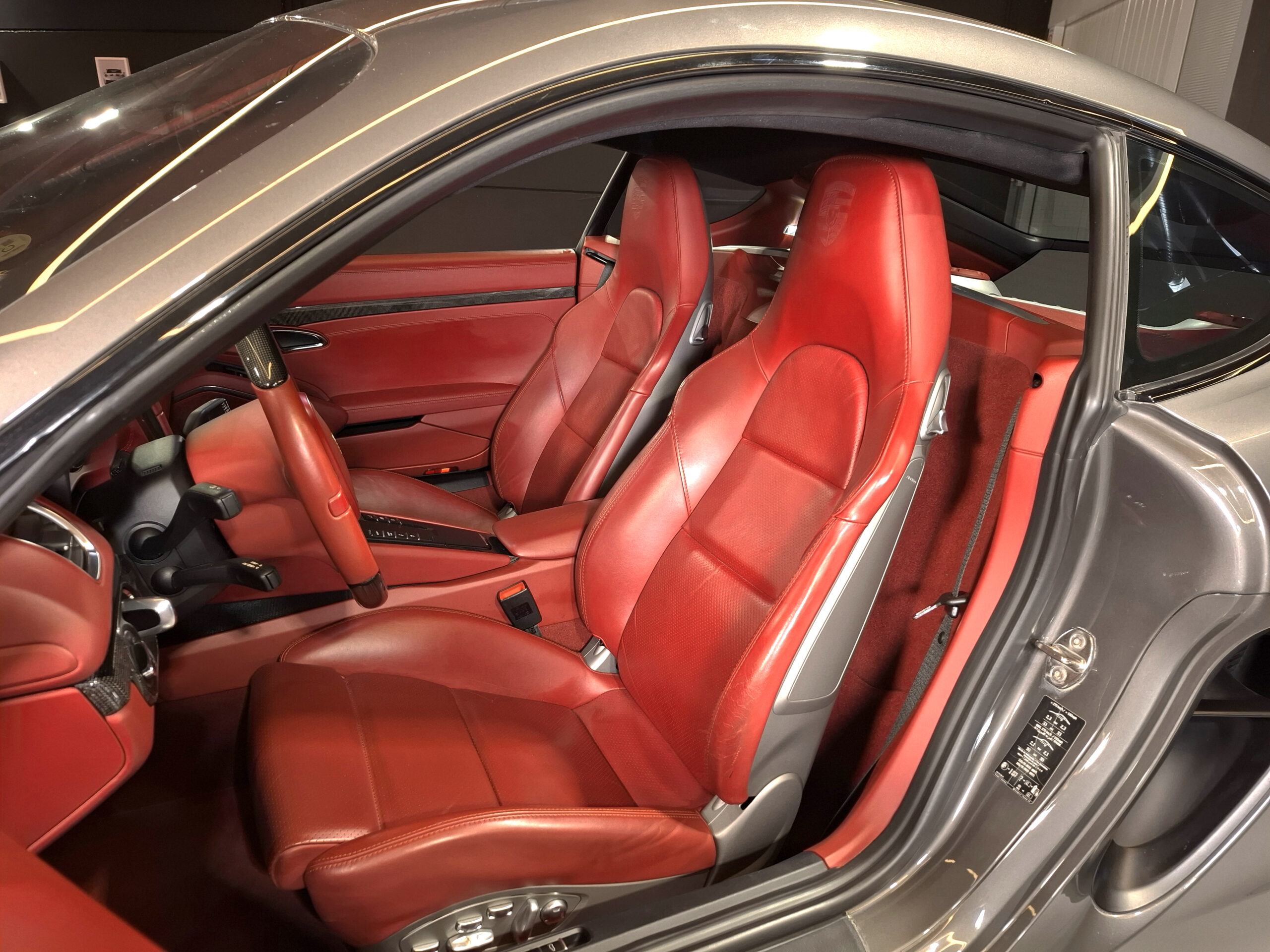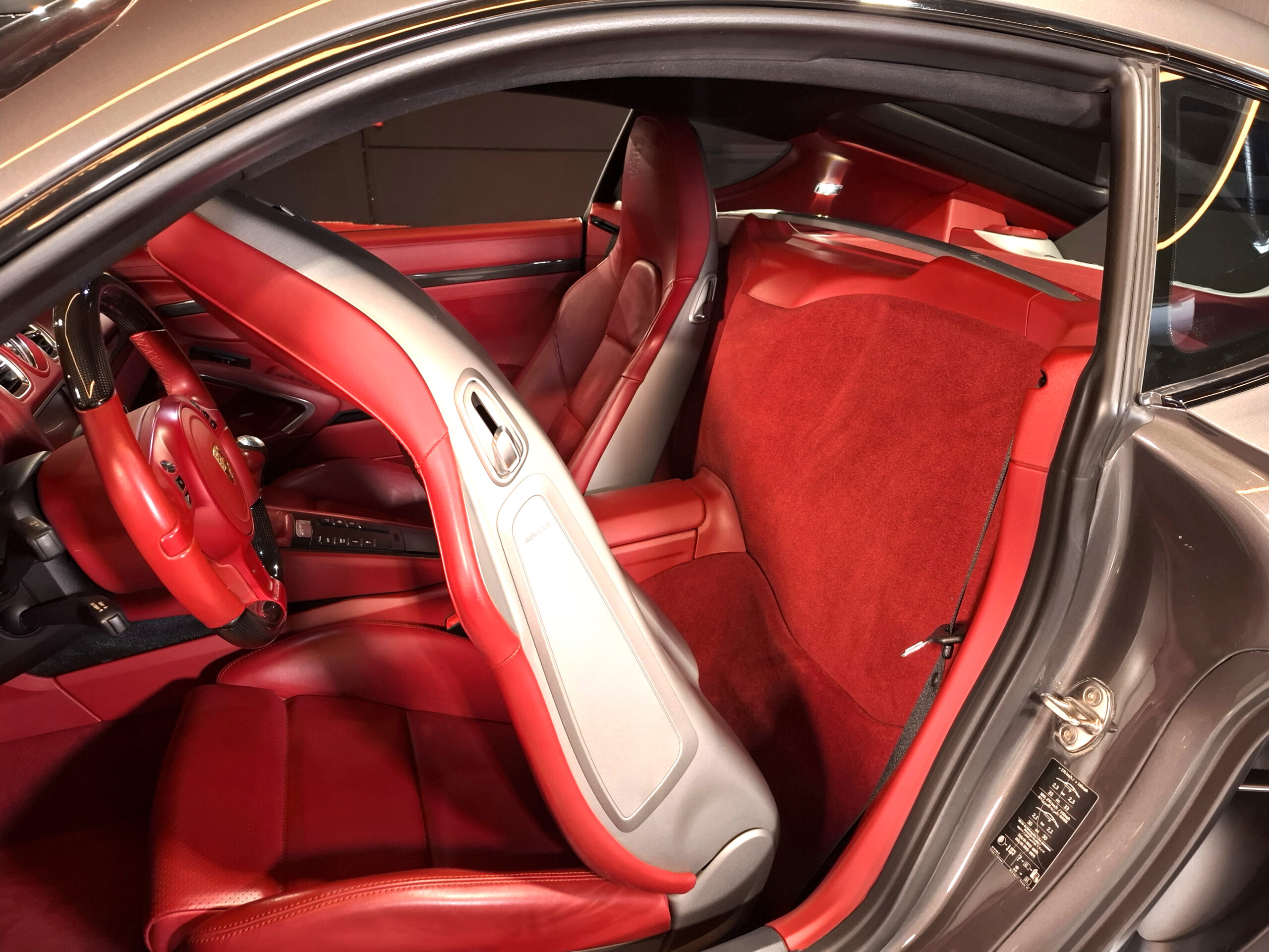Combinación de colores interesante, con un exterior discreto en gris sólido lleno de matices que viran a marrón, en contraste con un interior íntegramente en piel roja que le da el toque de color que necesitaba