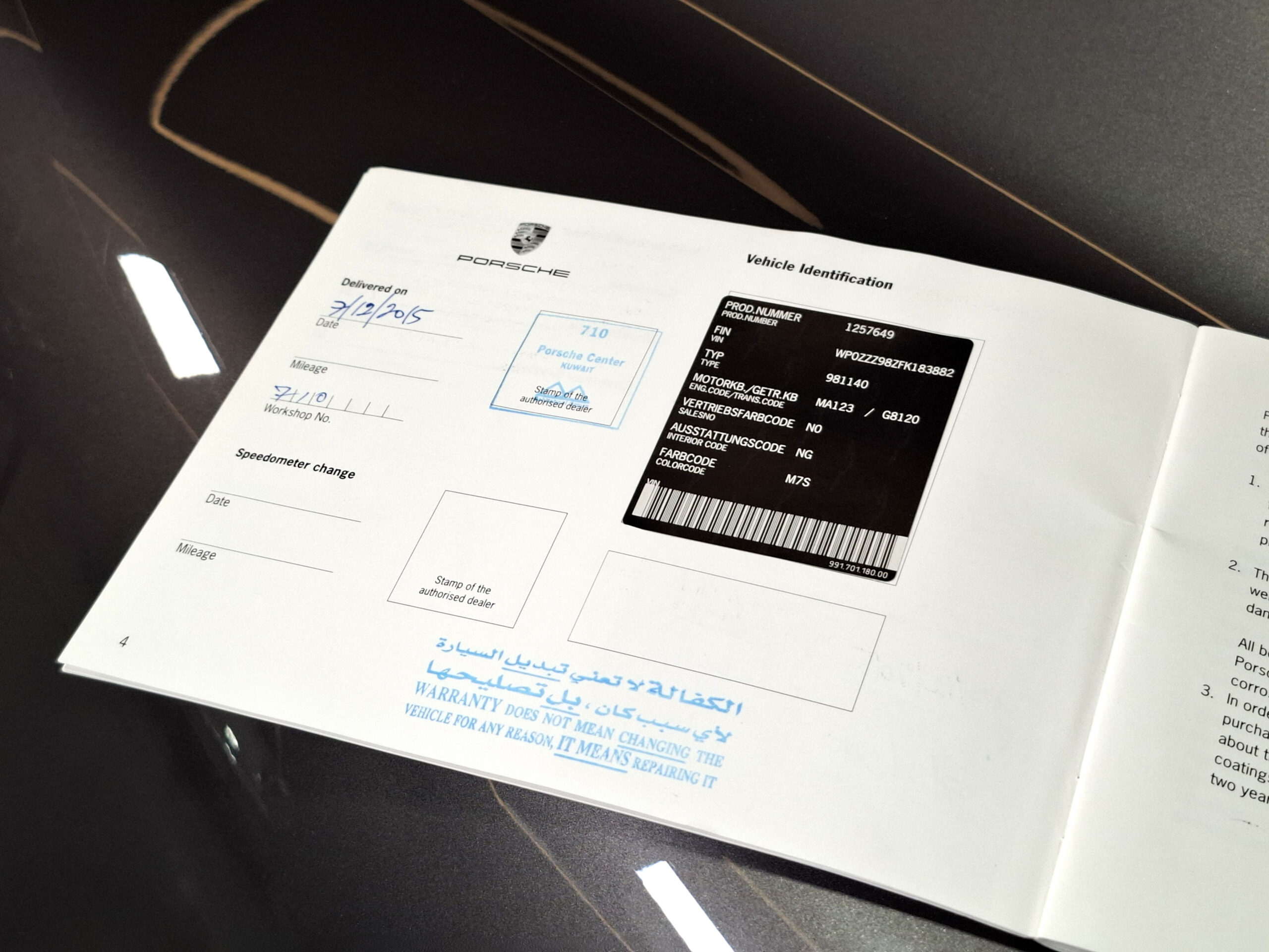 Esta unidad fue vendida en origen en diciembre de 2015 en Kuwait y traída a España en 2021 por cambio de residencia de su propietario, gracias a lo cual figura matriculado sin la menor incidencia en España. Su actual propietario lo vende exclusivamente por haber dado el salto a un 911.