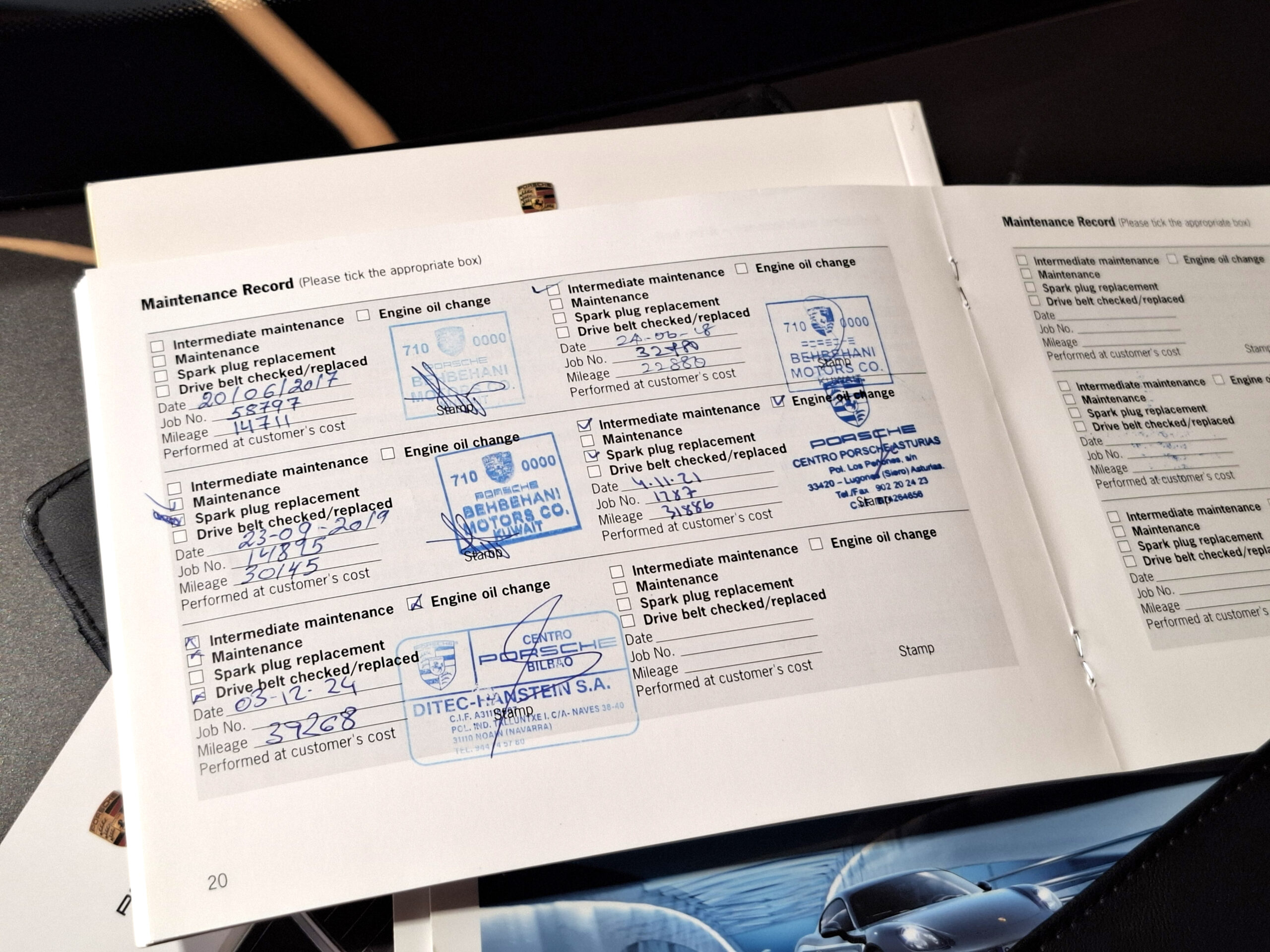El coche ha sido mantenido regularmente en Centros Porsche oficiales, tanto en su país de origen, Kuwait, como luego en España (Asturias y Navarra).